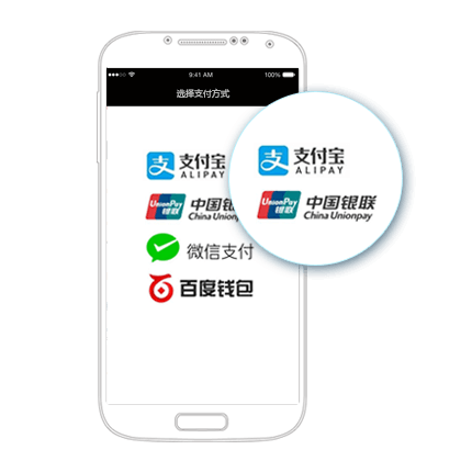 多云蚂蚁付,为iOS/Android原生/H5 App提供支付解决方案:支持微信支付、支付宝支付、银联手机支付、百度钱包等。